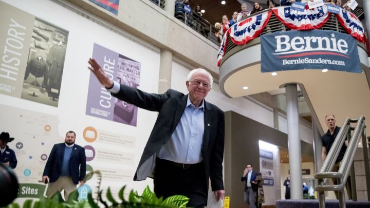 Democratic presidential candidate Sen. Bernie Sanders, I-Vt., arrives to speak at a campaign stop at the State Historical Museum of Iowa, Monday, Jan. 20, 2020, in Des Moines.