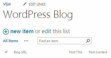 A WordPress new article is a new action introduced in NINTEX workflow for SharePoint 2013 that can be added from the NINTEX store. Using this action you will be able to post a blog on WordPress. To explain this action I have created a custom list with the following columns: