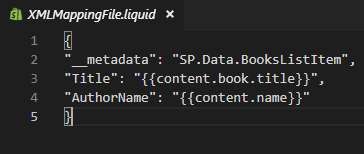 2. Map Component for Data Transformations: The XML data validated could be easily transformed into the required formats here. In our case, XML data will be transformed into JSON. We are using liquid templates to transform from one form into another. The following snapshot shows liquid template content, to convert into entries compatible of list items.