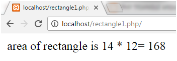echo "Area of Rectangle is $length * $width= " . ($length * $width) . "<br />";