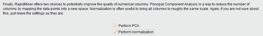 Once this is done, you are presented with an option to perform PCA and normalization on the dataset.