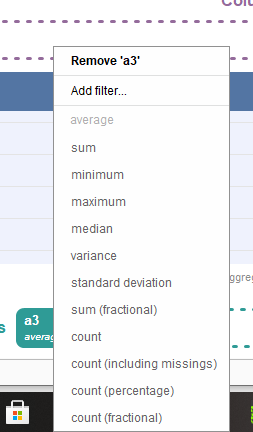 Once we have grouped the columns that we need to analyse we can select options like aggregate, average, median etc to get our desired outcome.
