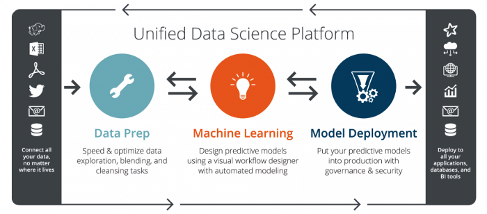 Rapid Miner is a platform for data scientists and big data analysts to quickly analyse their data. Rapid Miner has taken a huge leap in the AI community since it is most popularly used by non-programmers and researchers. The platform provides a vast number of options in terms of plugins and data analysis techniques. Apart from this, it is also compatible with iOs, Android, and web application tools like Node JS and flask. This platform is useful for anyone with an idea they would like to experiment with without spending much time or effort on it.