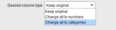 The column highlighted is the ID column. This is automatically dropped out of the dataset. Next, you have an option of converting the data into a number or categorical values. If you are not very sure about this you can keep the data as it is.