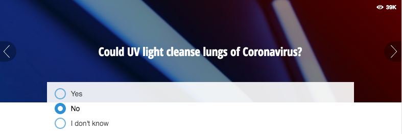 The idea of putting UV light inside the body to treat coronavirus was highlighted by President Donald Trump during a press conference where he made a number of controversial remarks regarding possible COVID-19 therapies. At the briefing, on April 23, Trump asked if there was something that could be done to use disinfectant to kill the virus "by injection."