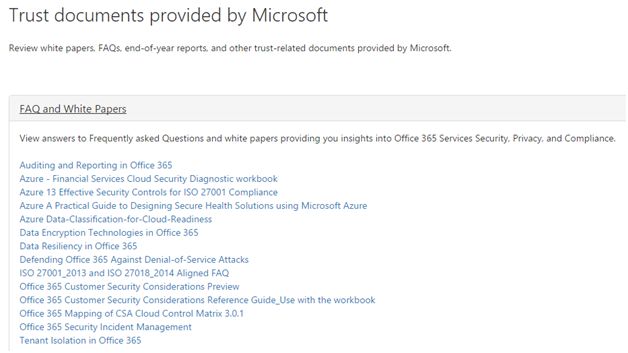 Microsoft will also provide you with the reports which have been created by the third parties to ensure you are in compliance with the terms of GRC Assessment Reports, ISO Reports and SOC/SSAE 16 Reports; and that your documents are secured on the region with your nature of the industry.