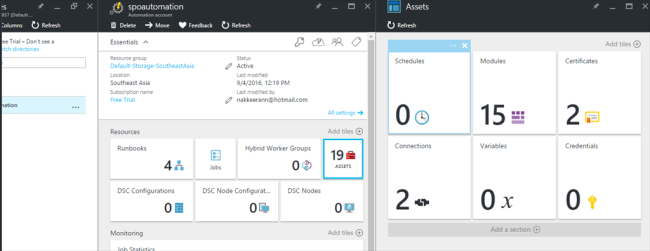 Go back to the Azure portal. Find and click the assets under the automation, you have created.