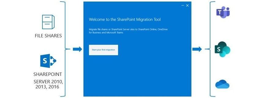 Use the SharePoint Migration Tool (SPMT) to migrate file shares or Sharepoint Server sites to SharePoint, OneDrive, and Teams – all in Microsoft 365.