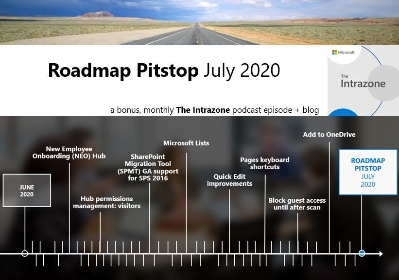 This month brought: A New Employee Onboarding Hub, Hub permissions for visitors, SharePoint Migration Tool (SPMT) support for SharePoint Server 2019 (GA), Microsoft Lists, Quick Edit improvements, Add to OneDrive, and more. Details & screenshots below, including our audible companion: The Intrazone Roadmap Pitstop: July 2020 podcast episode – all to help answer, "What's rolling out now for SharePoint and related technologies into Microsoft 365?"