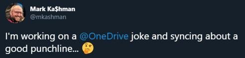 "I'm working on a @OneDrive joke and syncing about a good punchline... :thinking_face:" (@MKashman tweet)