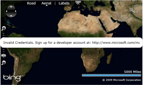 Bing Maps Key should be created to authenticate your Bing Maps application as described in the SDK for the Bing Maps API we are using. If you run the program without providing the valid Bind Maps Key then the map appears in the browser with a message that you have invalid credential appears.