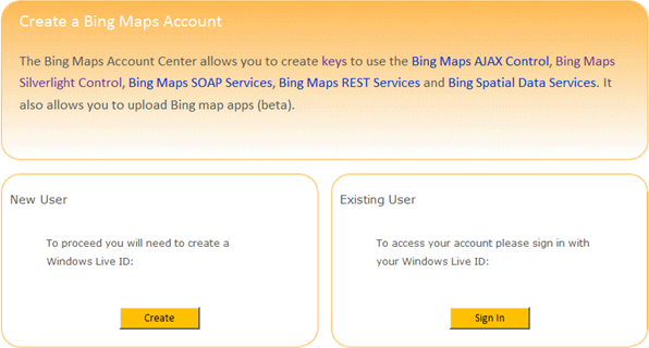 In the Create key box on the My keys page, provide the following information for the application that will use the Bing Maps key: