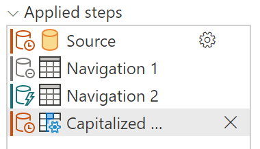 Modifying the example from above, you can give a transform that never folds – Capitalize Each Word. In step folding indicators, you will see that you have the exact same indicators as above, except the final step doesn’t fold. Everything up to this final step will be performed on the data source, while the final step will be performed locally.