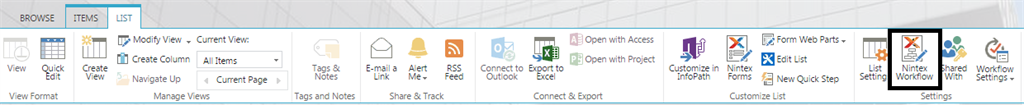 Click on the LIST tab on the top ribbon and click Nintex Workflows.