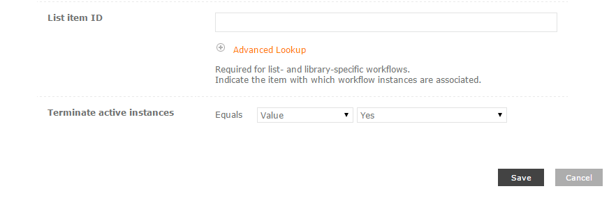 This action will help us to control the workflows by allowing us to terminate workflow instances for those items which are running necessarily or for those items for whom we want the instances to stop at some interval of time.