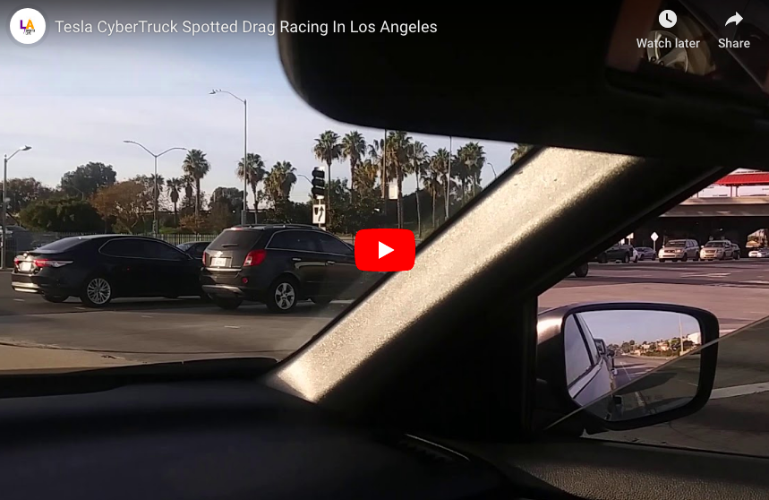Below is a good look at the Tesla Cybertruck accelerating down Crenshaw Blvd. with the Model 3 chase car and camera truck not too far behind.