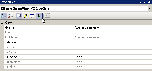 First we'll create a class that represents our game board, let's call it CSameGameBoard. Create a new class by right-clicking on the SameGame project in the Solution Explorer and selecting "Add -> Class..." or "Add Class..." from the Project menu. We want a C++ class from the C++ group and click "Add". This will bring up the Generic C++ Class Wizard. Fill it out with the class name that we chose as it appears below.