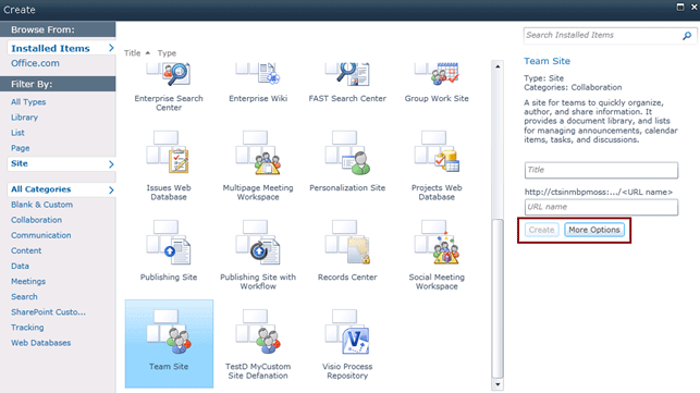 When you create a site through user interface (Go to Site Actions => More Options => Site => Select the template), in the right hand side you could see an option "More options".