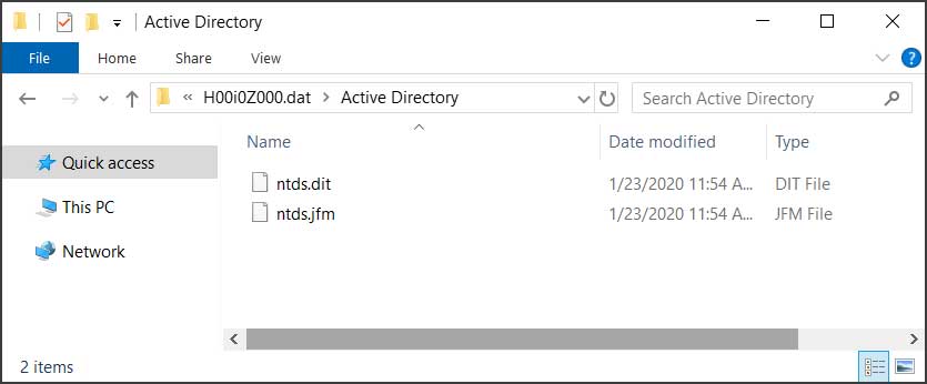 Inside this folder is a file called ntds.dit, which is a database that contains all Active Directory services information such as users, passwords, groups, computers, etc.