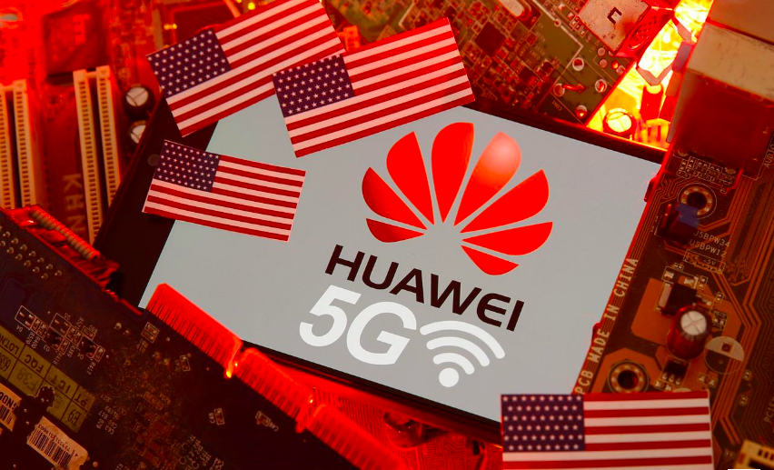 FILE PHOTO: The U.S. flag and a smartphone with the Huawei and 5G network logo are seen on a PC motherboard in this illustration taken January 29, 2020. REUTERS/Dado Ruvic/Illustration/File Photo