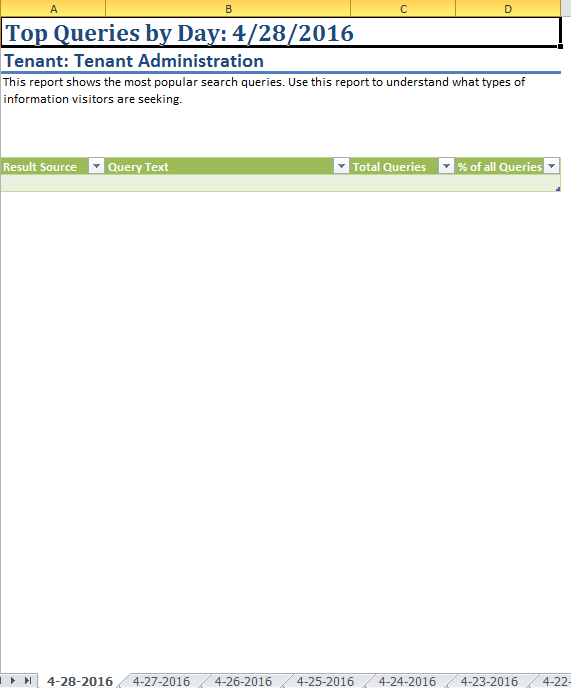 In this article we saw how to View Usage Reports from Search Administration at the SharePoint Admin Center on Office 365. We will see more in my other articles until then, keel reading and keep learning.