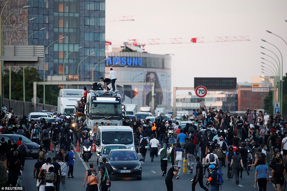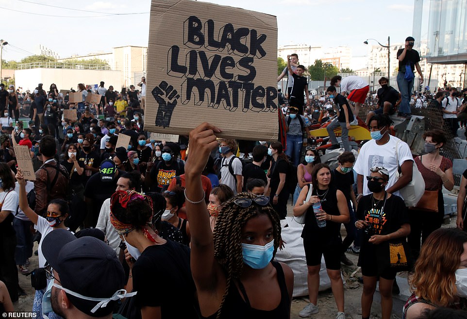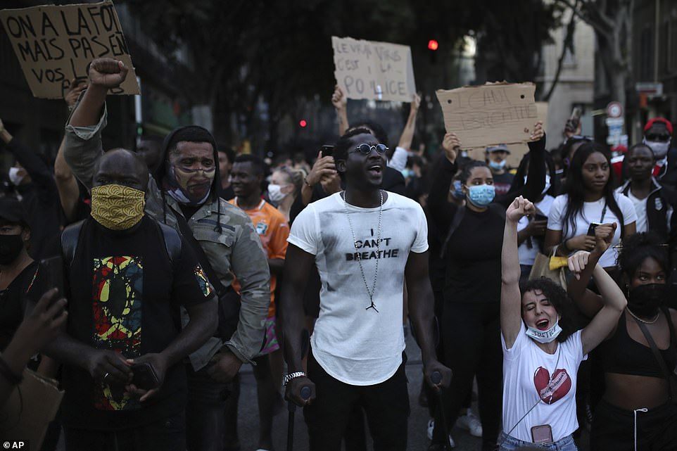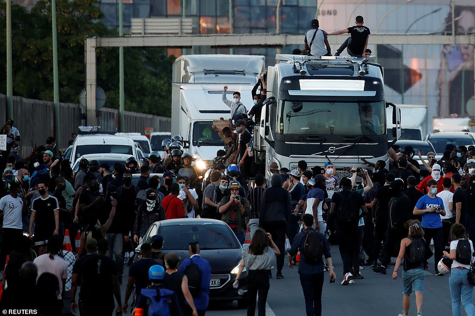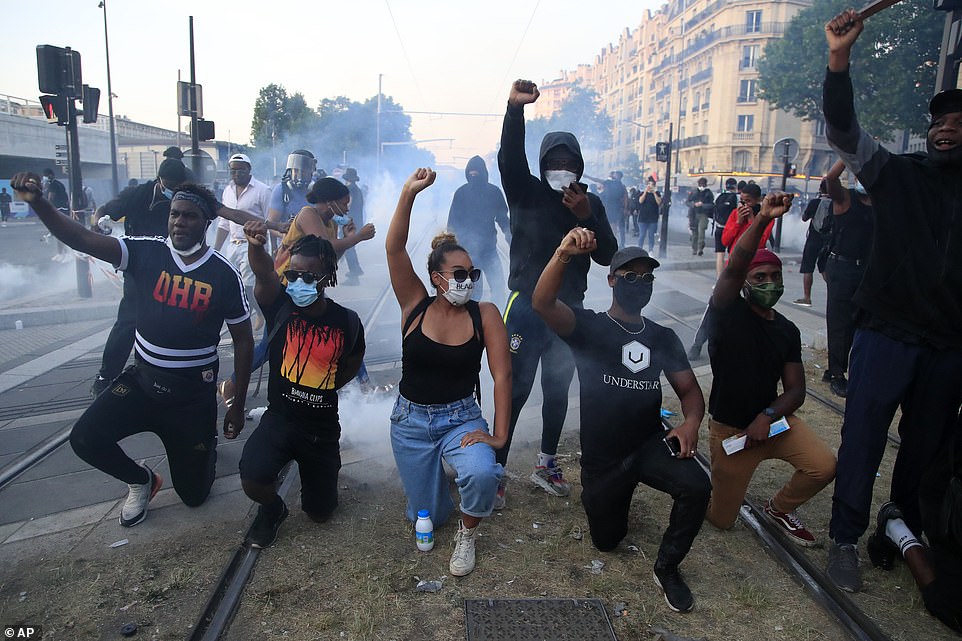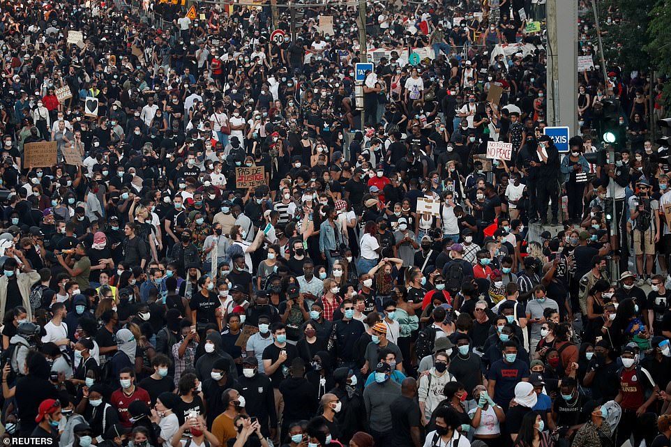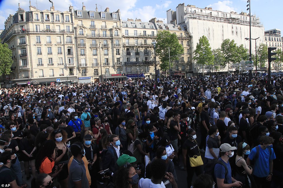 The protest was originally planned for Tuesday evening by supporters of Adama Traore, a 24-year-old black Frenchman of Malian origin who died in similar circumstances to Mr Floyd in July 2016