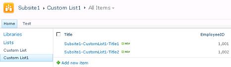 In the "Test" Site I have created one list based on "Custom List Definition" called "CustomList".