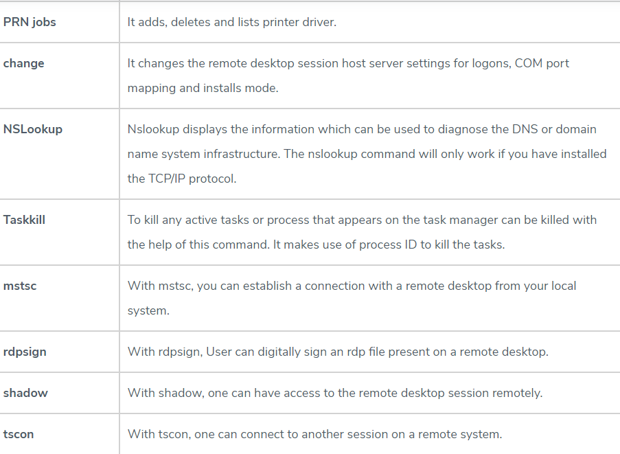 We have seen some useful windows command that comes handy when working on a remote desktop or a server. These commands can be grouped together to perform a series of tasks in a sequential order to automate some of the redundant tasks. Windows command can be used to interact with the Network File System (NFS), remote desktop services, windows server, and external and internal peripherals.