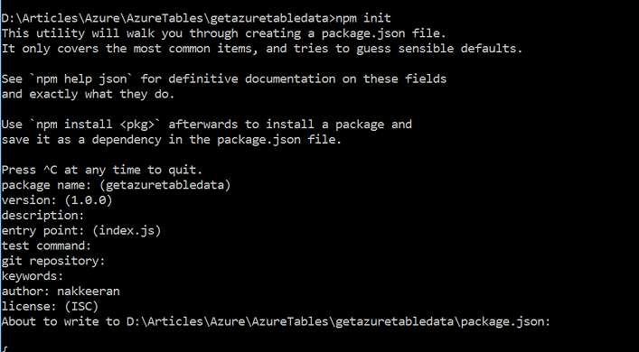 In this article, you have seen the basic example of retrieving the Azure Storage Table data into Node.js application.