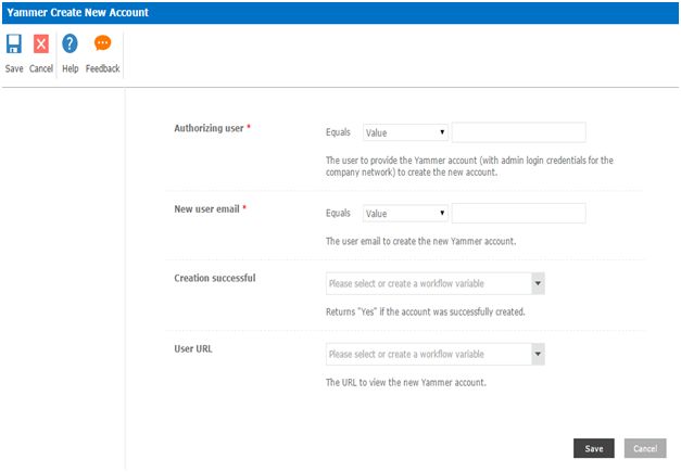 This action assists to create an account for a user on Yammer through workflow. Let’s see the implementation of this functionality.